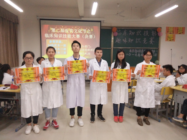 经过比拼,最终获得优秀个人奖的有:张宗洋、刘济、胡淑凡、龚月琪、罗璐、彭杨杨。获得一等奖的是14临床本三班的刘济、郭昌杨、游钦微;二等奖是14临床本一:金依依、汪彭博、罗露,15临床本三:彭杨杨、李云、李颖;三等奖的是14临床本三:胡淑凡、朱琳、吴雯;14临床本三修玉莹、龚月琪、吴海娟;14临床本一周慧敏、张宗洋、罗寰宇。最后,评委冯建平老师和黄佳文部长给优秀选手和团体颁奖,并拍照留念。
