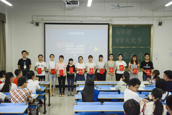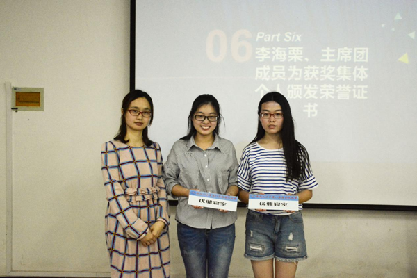 会议伊始,由主持人介绍出席本次会议的嘉宾,宣读本次会议的六项议程,并宣布表彰大会开始。首先,全体与会成员起立奏唱国歌。接着,医学部团委学生会副主席束沄超上台做总结汇报,束沄超在汇报中表示医学部在宿舍文化节中以总分第二的好成绩取得了优秀组织奖,同时分析了我部在宿舍文化节各个子活动中失分原因,总结了本次活动中的得与失,为医学部在下一届宿舍文化节取得好成绩奠定了基础。接着,由学会生劳生部部长鲁柯柯代表全体工作人员作总结发言。在发言中,鲁柯柯表示医学部在宿舍文化节中的不足之处主要是活动的宣传不足。然后,由医学部团委学生会主席孙佳宝上台宣读获奖集体和个人名单,同时由团委李海栗老师为获奖集体代表颁发荣誉证书,由主席团成员为获奖个人颁发证书,并合影留念。最后,由医学部团委李海栗老师作总结讲话。在讲话中,李海栗老师对获奖人员表示祝贺,对全体工作人员表示感谢,并提出要认识在活动中的不足,在下一届宿舍文化节中要规避失误,取得进步,同时李海栗老师表示,团学全体成员要总结各自在活动中的收获,进一步提升自己,并希望各班级可以配合支持团学工作。