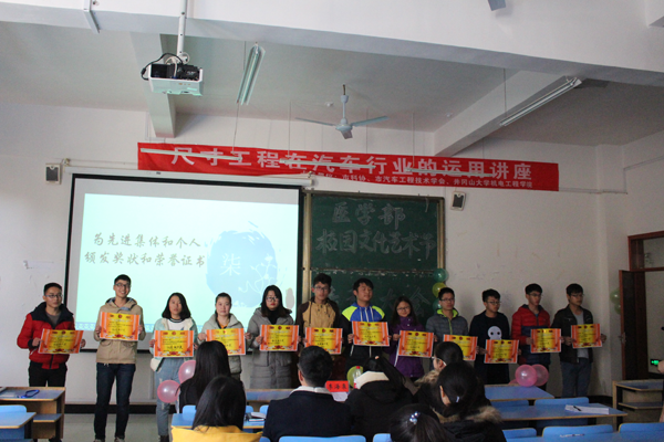 接着,李海栗老师宣读校园文化艺术节中获表彰的先进集体和个人,并为他们颁发奖状和荣誉证书,并做总结发言。她首先对各教练的尽职尽责及所有成员的参与表示由衷的感谢,对活动中取得的各项成绩表示充分的肯定。她指出,开展活动,相比结果,过程更值得重视,在准备活动的过程中是否尽心尽责了、是否付出了最大的努力、是否有所收获,这些才是开展活动的意义所在。最后,希望各班级积极支持团委学生会的工作,团委学生会的成员能够更加努力,在以后的活动中,为医学部进一步争光添彩。