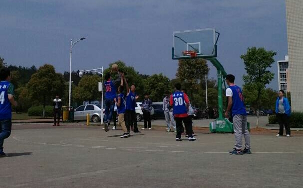 比赛于3月25日中午12:20在北区篮球场进行。比赛本着友谊第一,比赛第二的原则。由我部派出四人与电子与信息工程学院三人、建筑工程学院三人,共十人,随机组合成两支球队,进行了一场篮球友谊赛。