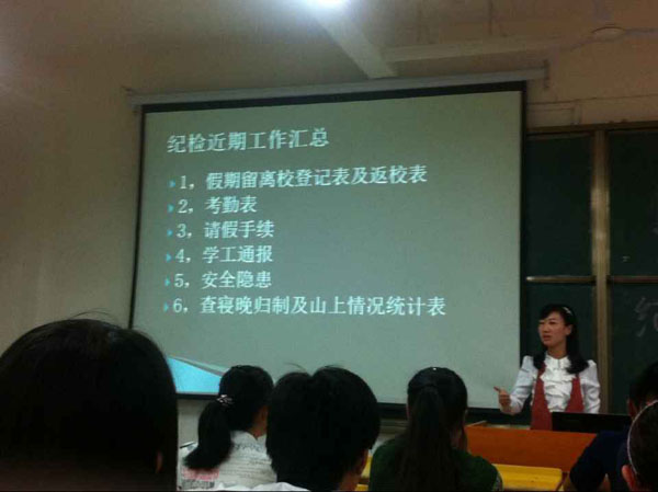 班长培训组由漆小凤、彭芳、冯建平老师主持,主要针对班级资助政策、评优评先、两奖一助、贫特困生、医学部班级积分制度、文档格式要求等日常事务进行培训;团支书和宣传委员组由刘宁老师主持,就团组织建设、推优制度、新媒体工作等进行讲解;纪保委员组由郭敏娜老师主持,就假期离留校登记、请假手续办理、课堂考勤、医学部学工通报制度、晚归查寝制度、安全隐患上报等进行培训;劳生委员组由涂微微老师主持,专门针对文明寝室创建标准、宿舍文化建设、内务检查制度进行培训。会上,各位老师还详细解答了学生干部在工作中的疑问和困难。