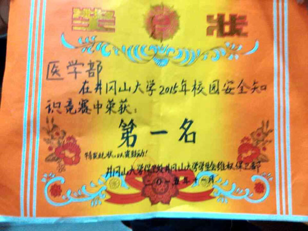 为提升同学们的安全防患意识,增长安全知识,我校保卫处于近期举办安全知识竞赛。医学部经过初赛、复赛,在半决赛中成功以第一名成绩进入决赛的比拼。代表学部参赛的是14口腔本2班袁依依、15护理专2班王义宁和15口腔本1班王娜三位同学。