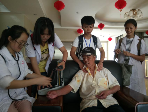 大部队到达目的地,在大厅门口进行分队。志愿者们最终被分成三队,一部分志愿者去往楼层为老人量血压、按摩,另一部分人则跟小朋友一起做游戏。福利院以老人居多,孩子们大部分都是难以自理的,能自由行动的孩子比较少。一边,老人们很欢迎志愿者们,不禁跟志愿者们开心地交谈起来。志愿者们走时,他们还笑着向志愿者表达了感谢之情。另一边,孩子们很欢脱,跟志愿者们开心地互动。本次献爱心活动持续到中午11点,大家收拾好工具,一起在福利院门前合照留念,然后坐车返回。