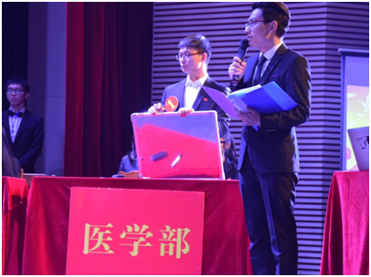 比赛正式开始前,一首《走进新时代》点燃了现场的气氛。紧接着展开激烈的比赛环节,现场的气氛也随之紧张起来。代表医学部参赛的四位选手准备充分,面对一道道难题,毫不逊色,沉着冷静,发挥稳定,接连答对题目,赢得观众阵阵掌声,最终脱颖而出,一展风采。