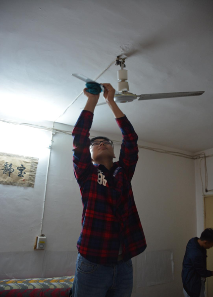 志愿者们分工合作,将厨房、卫生间、地板、阳台、风扇......周大爷家里里外外都打扫的干干净净,大家在忙碌中,还时不时和周大爷唠唠家常,让大爷倍感温馨。
