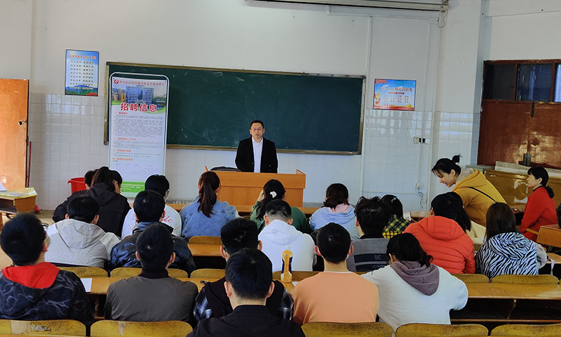 2021年3月24号上午,一个难得的春光明媚的日子,井冈山大学医学部临床医学院迎来了一次别开生面的现场招聘会。招聘方是以袁青山院长为代表的广东省清远市佛冈县人民医院。此次招聘会由井大医学部党委副书记刘坤负责,就业中心葛曾旭老师带队,医学部临床班班主任漆小凤老师组织的一次面向医学部临床班2016级毕业生招聘会。袁青山院长是井冈山大学医学部1996级学长,带着对学弟学妹的关切,带着团队来到阔别二十多年的母校展开招聘工作。 招聘会在井大临床医学院2栋211阶梯教室举行。袁院长向同学们介绍了佛冈县人民医院的基本情况:佛冈县人民医院始建于1949年10月,前身是佛冈县人民政府卫生院,1956年正式更名为佛冈县人民医院。医院占地面积16315平方米,建筑面积12846平方米,是集临床、教学、科研、预防为一体的综合医院,同时又是该县第一批医保定点医院。又接着有阐明了聘用工作人员的条件和福利待遇。