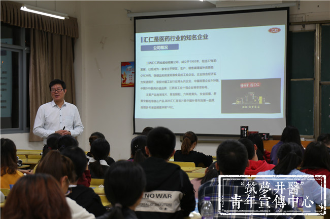 2019年10月18日晚上18:30,江西汇仁药业股份有限公司专场招聘宣讲会在20栋107教室举行。此次宣讲会面向的主要是医学部16级药学专业的毕业生。